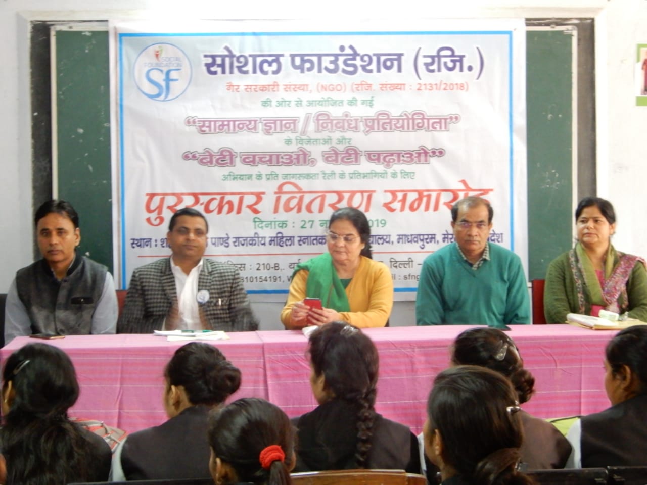 On November 27, 2019, Social Foundation organized a prize distribution ceremony at Shaheed Mangal Pandey Government Girls Post Graduate College, Madhavpuram, Meerut, celebrating the achievements of young women in our “Beti Bachao, Beti Padhao” awareness campaigns.